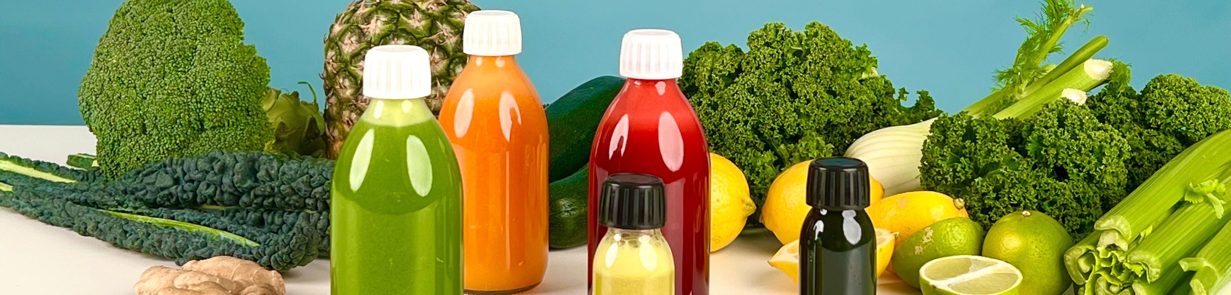 Hav dit daglige juiceshot med på farten i de geniale glasflasker.